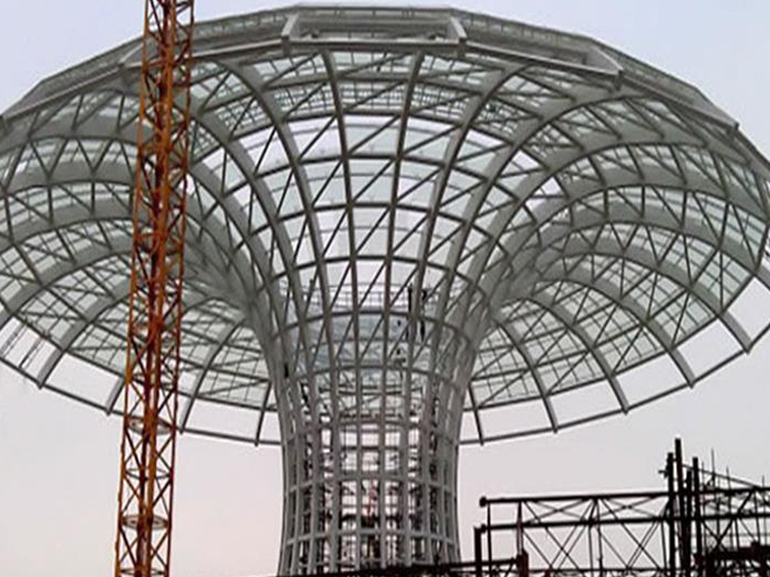 二、球形网架结构因其结构新颖,受力合理,自重轻、用钢量低等优点。如大型体育场馆球形长治螺栓球网架、公共场馆球形网架、电厂长治螺栓球网架、水泥工业球形网架、仓储物流球形网架、长治干煤棚工业球形网架、长治收费站长治加油站球形网架、展览中心、影剧院、商场、航站楼、候车厅、工厂长治车间、仓库、电视塔等球形螺栓球节点网架。国内球形网架结构主要分为:长治焊接球节点网架及螺栓球节点网架两种。螺栓球节点网架其构件工厂内加工量较大,现场安装便捷,适用于现场工期紧,长治施工条件、用电量受制约,网架形状复杂、长治杆件定位困难的异形结构。螺栓球节点球形网架系统基本由长治杆件、螺栓球、支撑支座等组成。按照节点形式可分为交叉长治桁架体系、四角锥体系、三角锥体系等。支撑方式多为固定支座支撑。对于大面积、大跨度及有特殊受力或伸缩要求的网架结构可采用橡胶支座、滑移支座、球铰支座等支撑形式,以满足结构自身的受力稳定、均衡,便于内力释放等设计要求。
